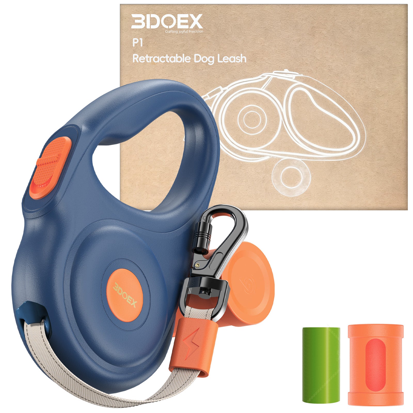Retractable Dog Leash for Small and Large Dogs, Heavy Duty Reflective Anti-Bite Nylon Rope with Poop Bag Dispenser, Explosion-Proof Carabiner, Anti-Slip Handle
