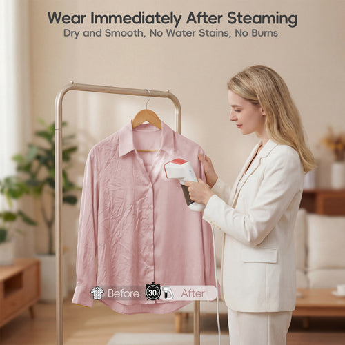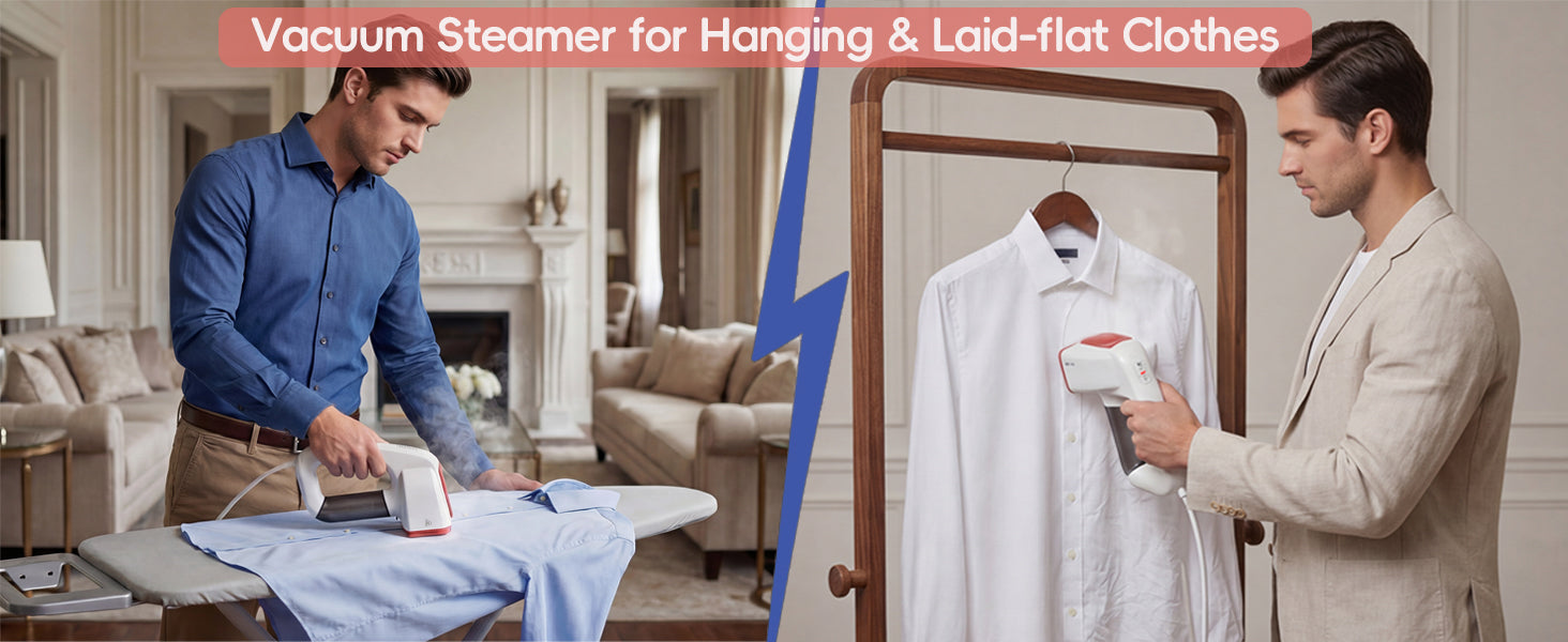 - 【Instantly Dry and Ready to Wear, No Water Stains–A Vacuum Steamer for Clothes】 Our handheld clothes steamer features a unique moisture-absorbing function. While steaming, it effectively removes residual moisture and releases heat, drying your clothes instantly without the need for hang-drying. With a fast 30-second preheat time, your clothes are ready to wear immediately. In just 2-3 minutes, even a wrinkled shirt can be smoothed out, dry, and fresh, saving you precious morning time. this steamer will double your morning efficiency!